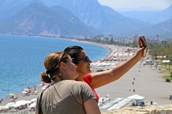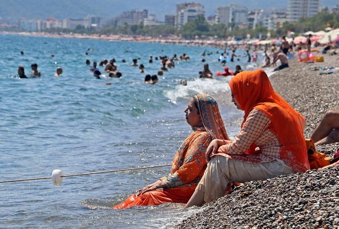 Yaz ayının son zamanlarında yoğun ilgi gören Antalya plajları misafirlerini ağırlamaya devam ediyor. Kavurucu sıcakların etkili olduğu kentte dünyaca ünlü Konyaaltı Sahili?ne gelen tatilciler, denizin ve güneşin tadını çıkardı. Kent merkezinde termometreler öğlen saatlerinde 39 dereceyi gösterirken, hissedilen sıcaklık 41, nem oranıysa yüzde 52 olarak ölçüldü. Sıcaktan bunalan tatilciler ve yerli vatandaşlar, kendini Akdeniz?in serin suları ile serinletmeye çalışırken, kimileri de ağaç gölgesinde sıcaktan korunmaya çalıştı.