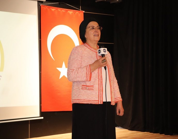 Rıza Hançer?in konuşmasının ardından Abdulvahit Şimşek?in eşi Hazal Şimşek tarafından teşekkür hediyesi verildi.
