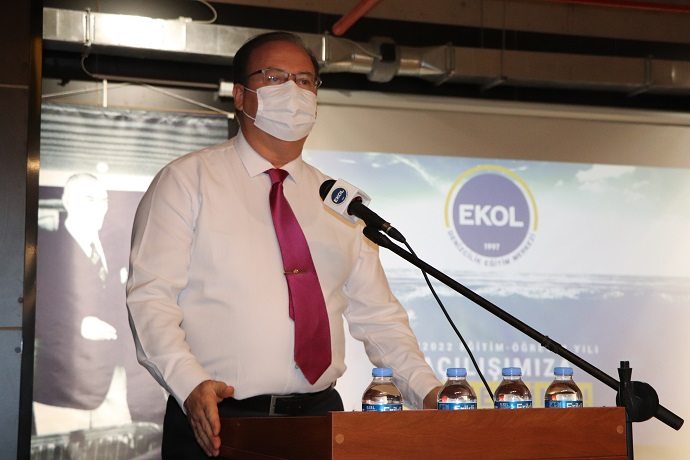 Saygı duruşu ile başlayan törenin açılış konuşmasını Ekol Denizcilik Eğitim Kurumu Müdürü Mutlu Arslan yaptı. Devam eden pandemiye rağmen öğrencilerin okulun yolunu tutarak eğitime başlamak istemesinin önemli olduğuna vurgu yapan tedbirlerle birlikte salgınla mücadele ederek eğitime devam edeceklerini belirtti. Ekol Denizcilik?teki eğitimin kalitesine işaret eden Arslan, ?Bu ortak başarıyı birlikte paylaşıyoruz. Bu başarı hem İngilizce eğitim modelimizin niteliklerini hem de modern simülatörler ile donatılmış olan kurumumuzda öğretmenlerimizin gayreti ile tüm personelimizin profesyonelliği ve bağlılığı sayesinde gerçekleşecektir? dedi. Yeni öğretim yılında yol haritalarının iddialı ve heyecanlı olduğunu kaydeden Arslan, ?Birlikte sizleri okulumuzun özü olan nitelikleri ve değerleri yaymak ve paylaşmak için hayal gücü ve bağlılık göstermeye davet ediyorum? dedi.