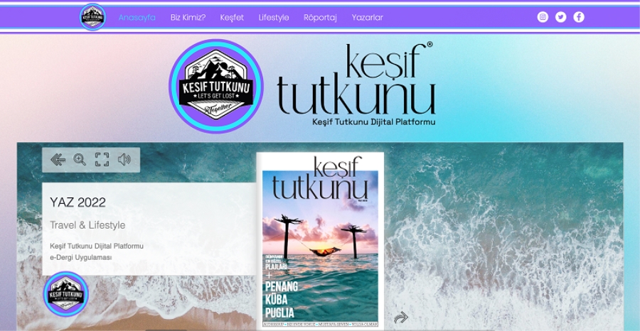 Turizm sektörünün Dijital PR mecrası olarak konumlanan, “Keşif Tutkunu Dijital Platformu” yayın hayatına başladı. Keşif Tutkunu Dijital Platformu, turizm sektöründeki markalara sosyal medya ve dijital mecralarda iletişim imkanı sunuyor. Toplam 6 milyona ulaşan takipçiye sahip olan platformda @kesiftutkunu sosyal medya hesabının yanı sıra @gormen_lazim, @nohutbasgan, @gaforizma ve @kitapalintisi gibi basında da sıkça kaynak olarak kullanılan, güçlü sosyal medya hesapları da platforma dahil edilmiş. Platform, turizm sektöründeki paydaşlara sosyal medyada ve dijital mecralarda seslerini duyurma, markalaşma ve bunların da yanı sıra satışlarına katkıda bulunma şansı sunuyor. 3 ayda bir yayımlanacak olan Seyahat-Yaşam Dijital Dergisi ile de, turizm sektöründeki markaları; Turkcell Dergilik, Vodafone dMags, Dijital Basın ve Magzter uygulamalarının içine de, e-Dergi ile taşıyor. Platforma kesiftutkunu.com.tr üzerinden de ulaşılabiliyor.