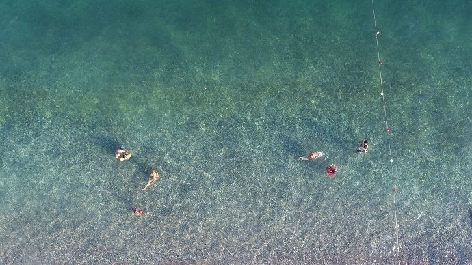 Her yıl milyonlarca turisti ağırlayan Konyaaltı Sahili?nde bugün gündüz saatlerinde renk değişimi yaşandı. Yer yer yeşil, yer yer ise sarımsı renklerin hakim olduğu sahilde tatilciler denize girmeye devam etti.