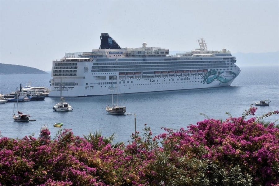 Norwegian Jade adlı Bahamalar bayraklı kruvaziyer gemi Santorini Limanı'ndan yola çıkarak Bodrum Yolcu Limanı'na ilk kez uğradı.