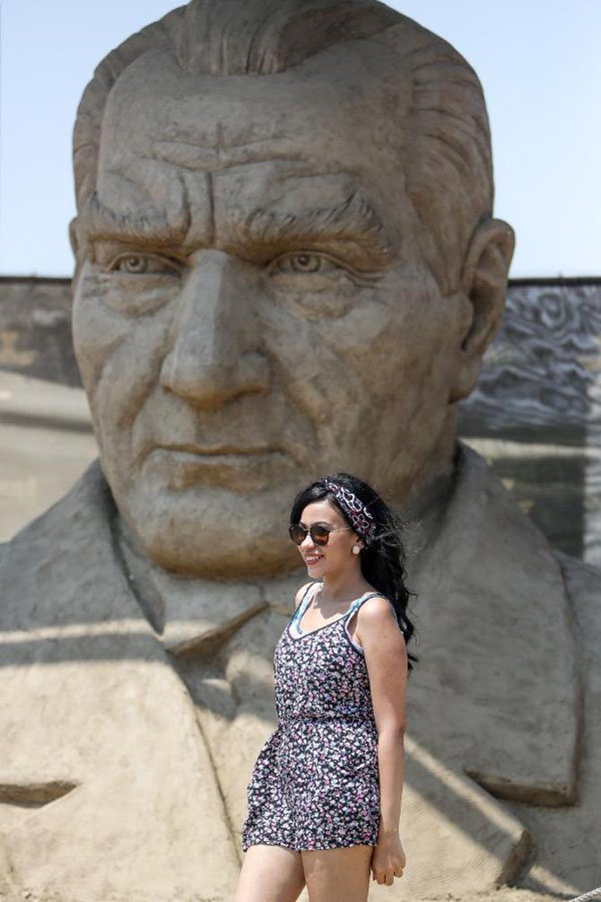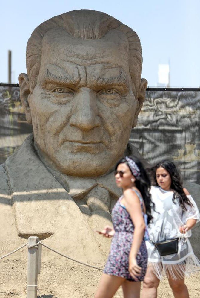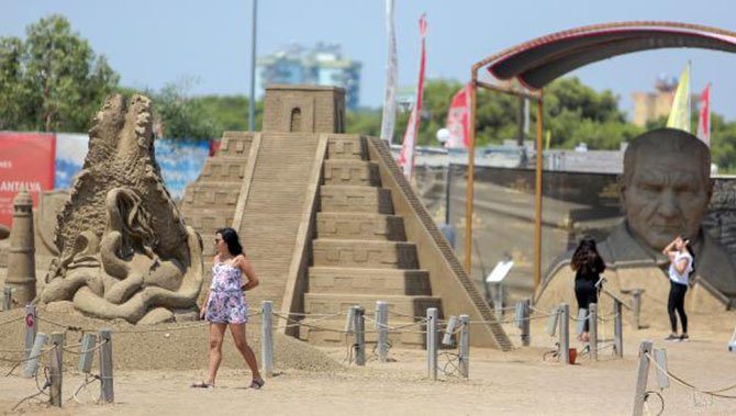 Festival teması kapsamında Leviathan, Captan Silver, Poseidon ve AquaMen heykellerinin yanı sıra girişte bulunan Mustafa Kemal Atatürk`ün kumdan heykeli turistlerden yoğun ilgi görüyor. Alana gelen turistler Atatürk heykeliyle selfie çekmeden gitmiyor.