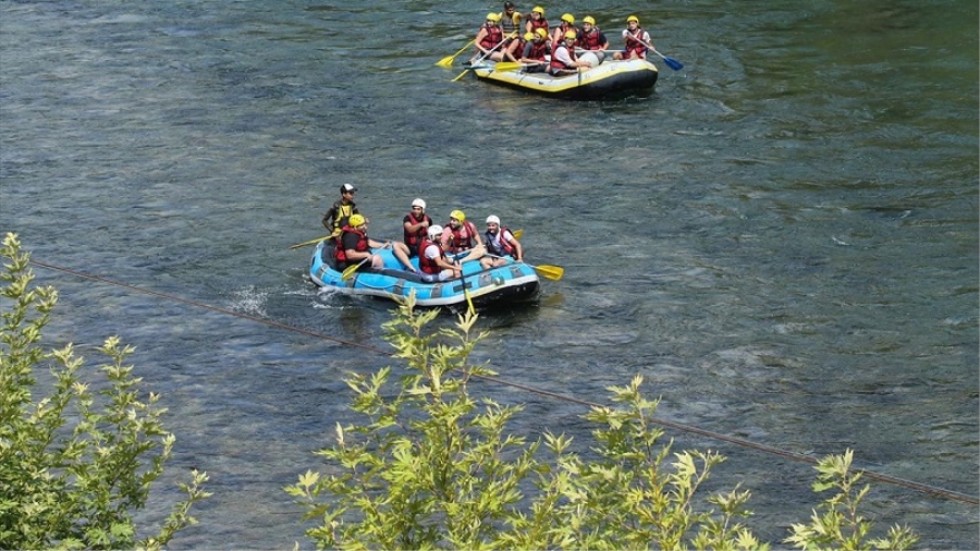 Kentteki turistik tesislerde konaklayanlar tatillerine adrenalini de eklemek için "rafting turları"na katılıyor.