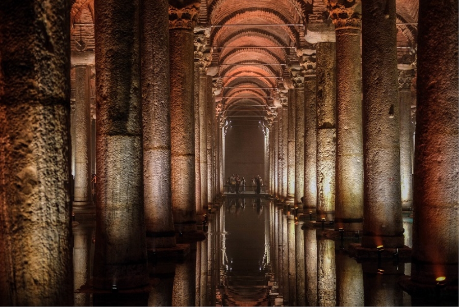 Yerebatan Sarnıcı, su deposu olarak Bizans İmparatoru Jüstinyen tarafından 500’lü yılların ortalarında yaptırıldı. Bin 500 yıllık bir tarihi eser olan sarnıç 10 bin metrekare alanıyla dev bir yapı olarak göze çarpıyor. İçerisinde 336 adet mermer sütun kullanılarak yapılan sarnıç, Bizans sarayının o dönem su ihtiyacını karşılıyordu. Daha sonra da Topkapı Sarayı tarafından da sarnıç kullanıldı. 100 bin ton su depolama kapasitesine sahip olan sarnıç geçmiş dönemlerde birçok kez restorasyona uğramış.