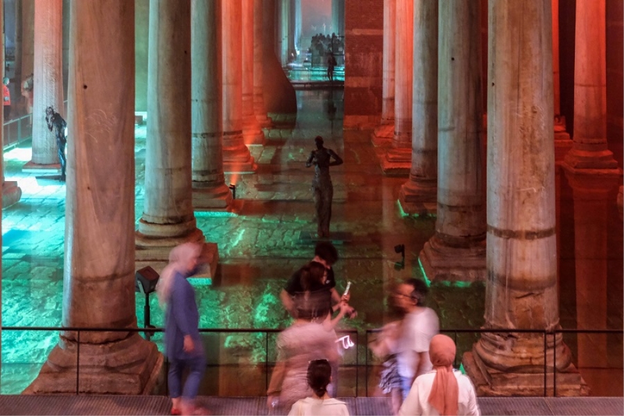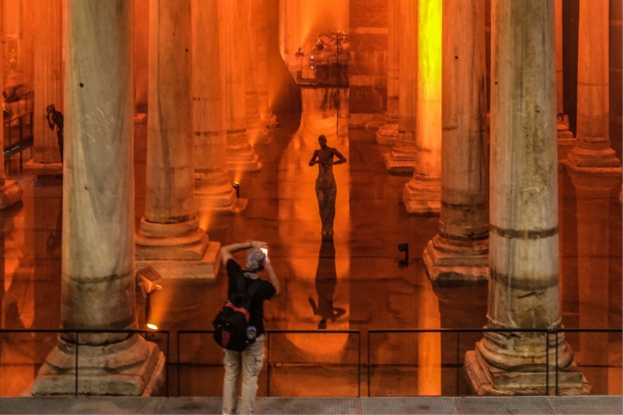 İstanbul’da Tarihi Yarımada’da yer alan Yerebatan Sarnıcı, 2017 yılında girdiği restorasyon çalışmaları sonrası yeniden ziyarete açıldı. Sarnıcı açıldığı günden bugüne binlerce kişi ziyaret etti. Yerli ve yabancı turistlerin akınına uğrayan sarnıcın içerisinde yaşanan yoğunluk dikkat çekiyor. Bin 500 yılda en kapsamlı restorasyonu geçiren sarnıçta birçok yenilik göze çarparken, yapıda bulunan beton yol kaldırılarak yerine modern malzemelerle metal bir zemin yerleştirildi. Delikli metal zemin üzerinde yürüyen ziyaretçiler suyun görülebildiği platformda yürüyebiliyor.
