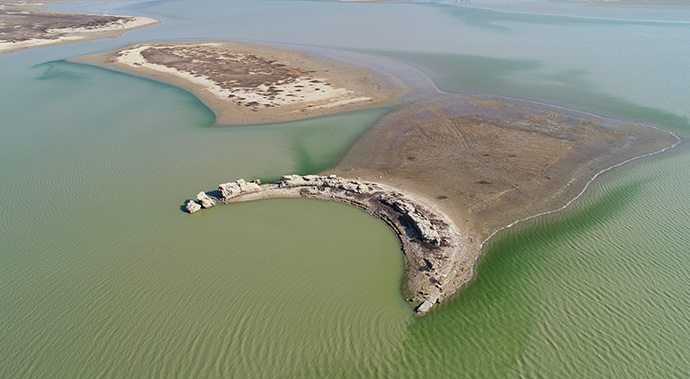 ama bu sene daha fazla çekildi ve antik kent ortaya çıktı. Burası zamanında