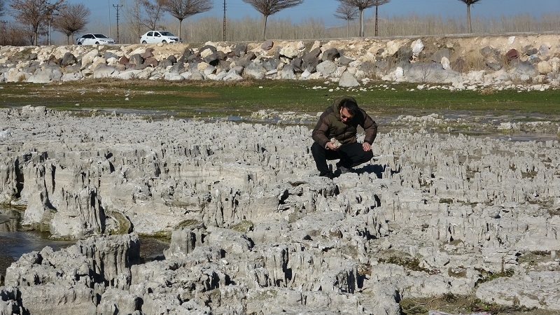 Daha önce sadece dalış yaparken rastlanan mikrobiyalitlerin, gölün çekilmesiyle beraber kıyı şeridinde binlercesine rastlanıldığını belirten Akkuş, sözlerini şöyle sürdürdü: